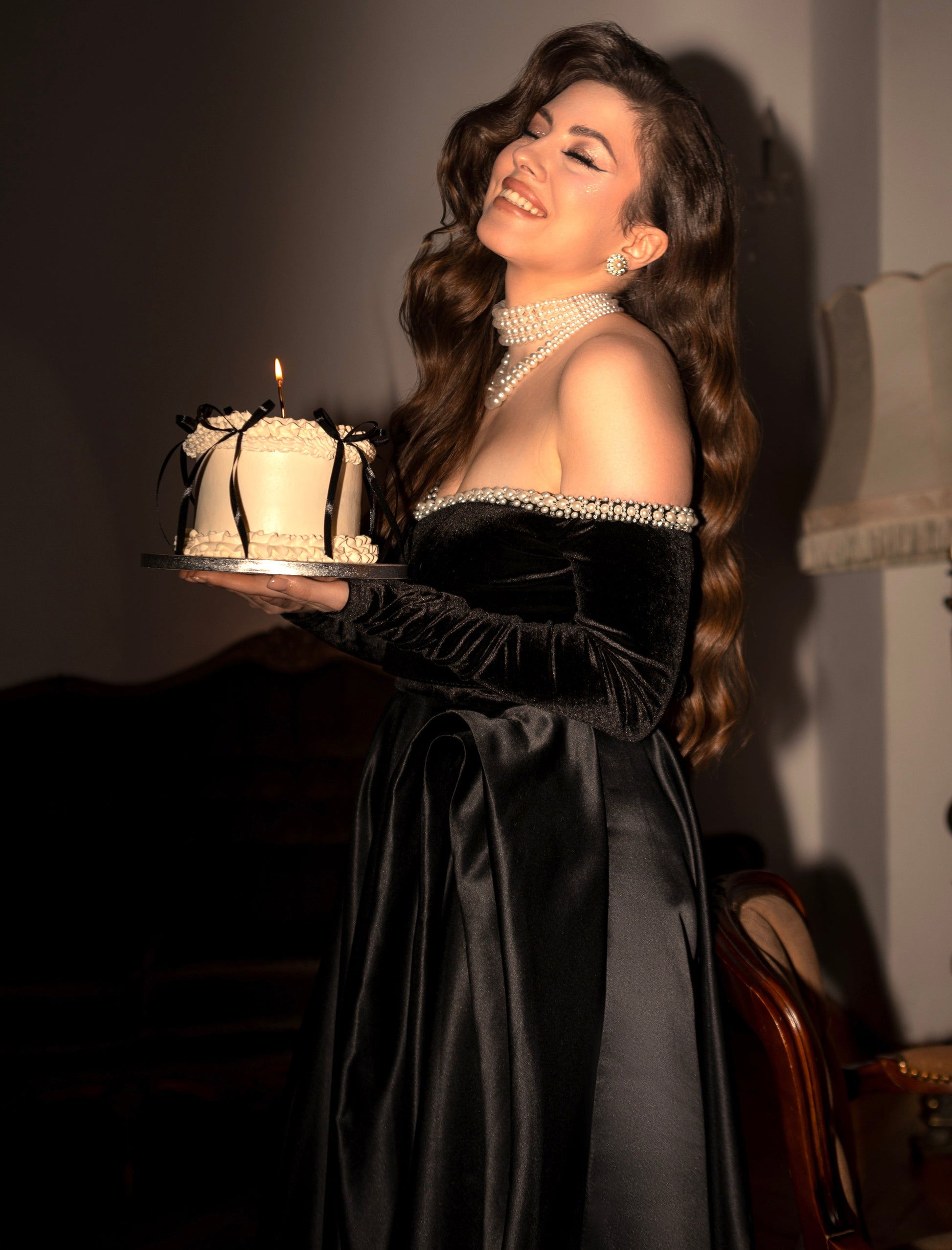 Sukienka Raven łączy aksamit z satyną, podkreślając elegancki styl i wyrafinowanie. Głęboki czarny kolor oraz wykończenie z błyszczącymi akcentami przy dekolcie nadają jej wyjątkowego charakteru. Idealna na gale, eleganckie kolacje czy oficjalne uroczystości.