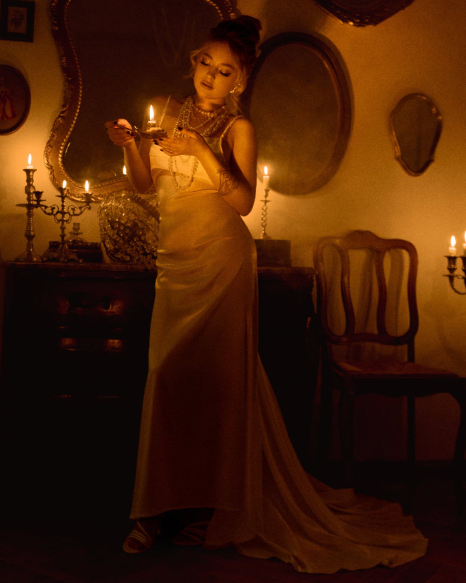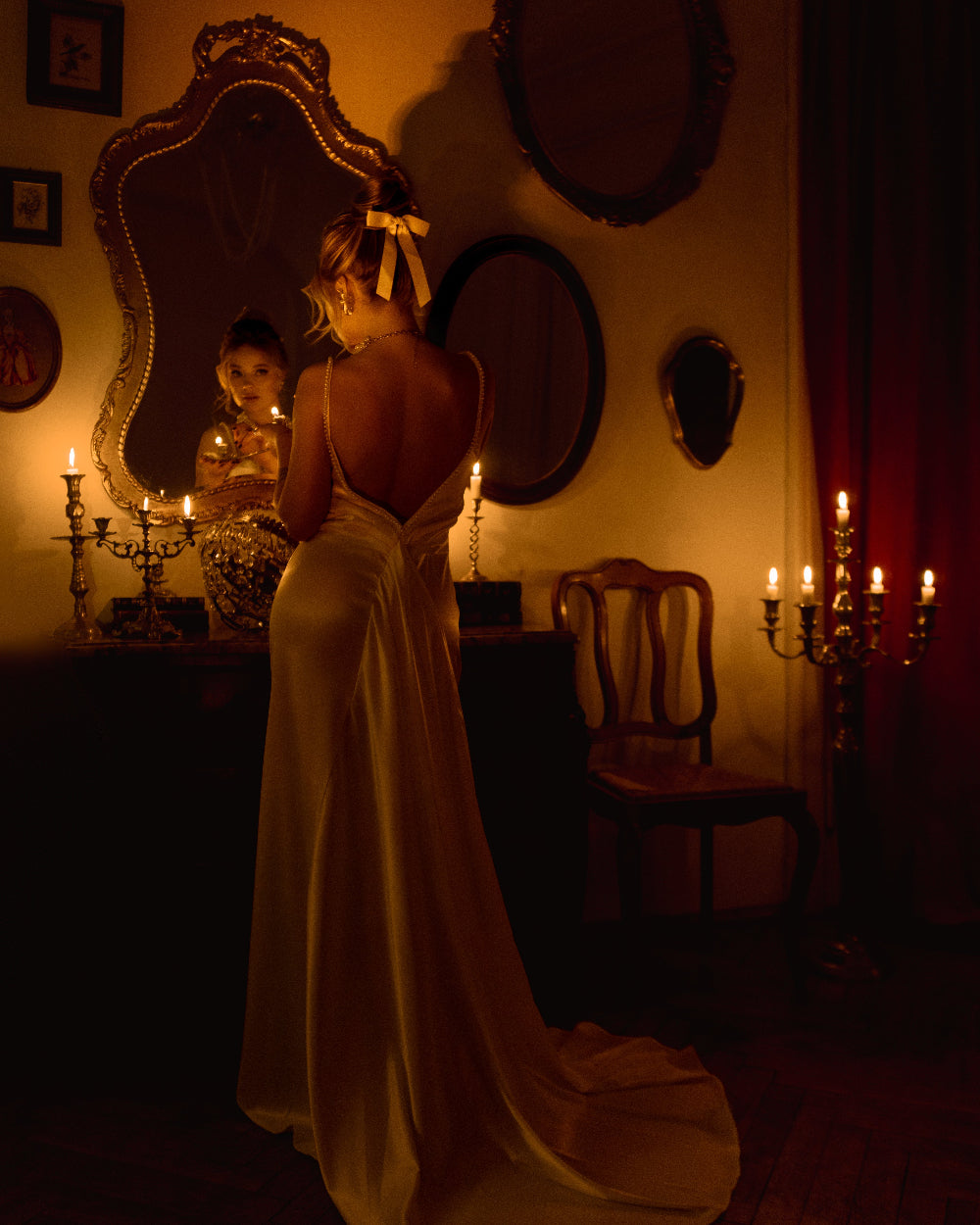 Sukienka Moon w kolorze bieli wyróżnia się perłowymi zdobieniami na ramiączkach i głębokim dekoltem na plecach. Ta sukienka to esencja elegancji i klasy, idealna na śluby, wesela, bankiety oraz sesje zdjęciowe.