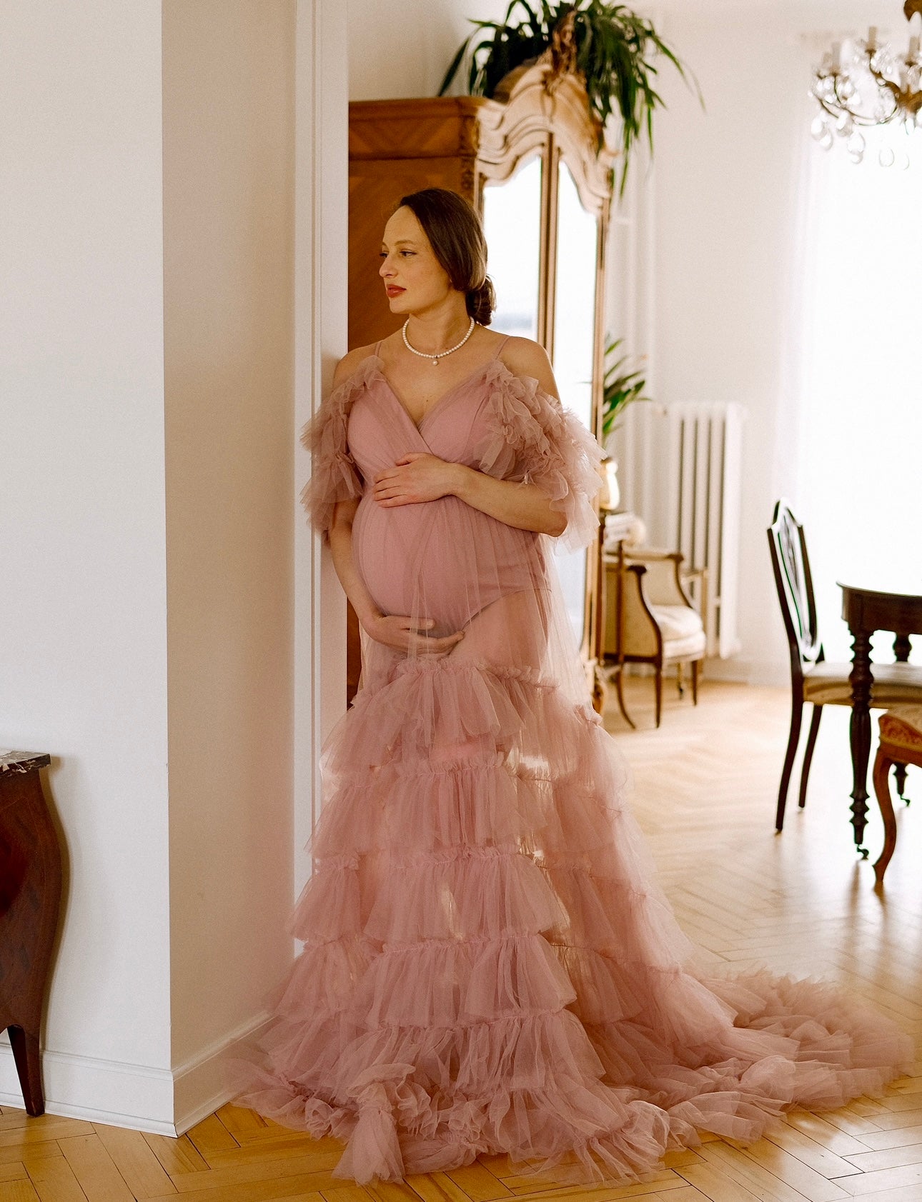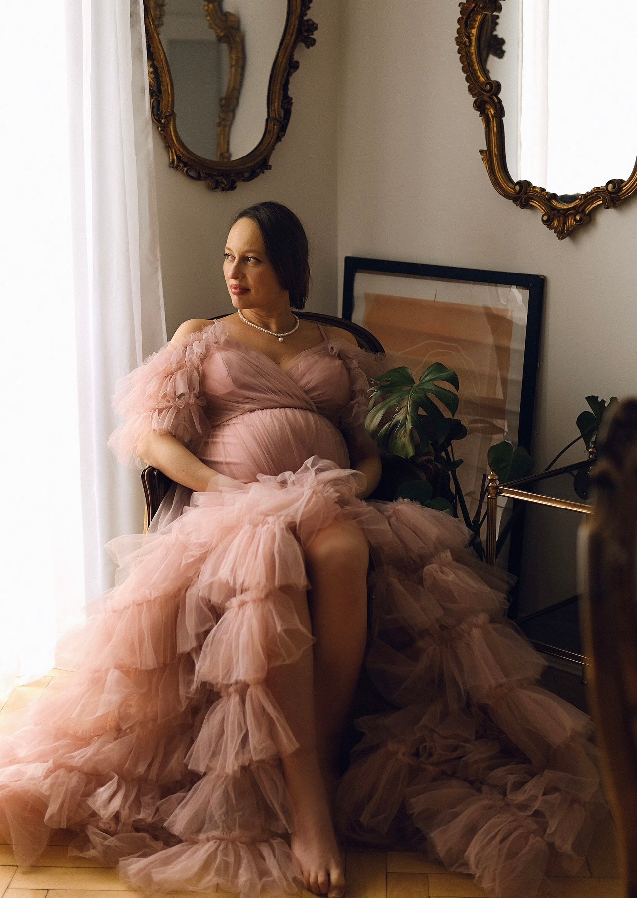 Poczuj się jak prawdziwa bogini w naszej wyjątkowej sukience ciążowej Cloud! 🌸 Jej lekki, wielowarstwowy tiul otula sylwetkę, nadając subtelnej romantyczności i eterycznego uroku. Sukienka w odcieniu pudrowego różu została stworzona z myślą o przyszłych mamach, które pragną zachować elegancję i wyjątkowy styl podczas sesji zdjęciowych, baby shower czy rodzinnych uroczystości.